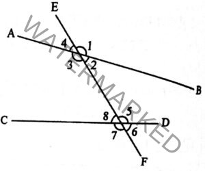 1. চিত্ৰত AB, CD ৰেখাৰ EF ছেদকে কৰা কোণবোৰৰ নাম দিয়া আছে। ইয়াত লিখা-
