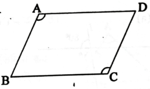 উত্তৰঃ AB আৰু DC দুটা বিপৰীত বাহু, ∠A আৰু ∠C দুটা বিপৰীত কোণ।