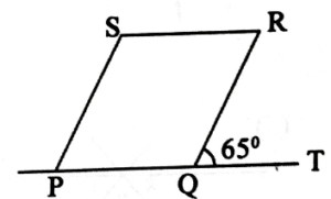 6. PQRS সামান্তৰিকটোৰ বহিঃকোণ ∠RQT = 65° । সামান্তৰিকটোৰ ভিতৰৰ কোণকেইটাৰ মাপ উলিওৱা।