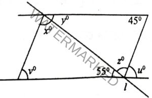 উত্তৰঃ x = 80°, y = 55°, z = 80°